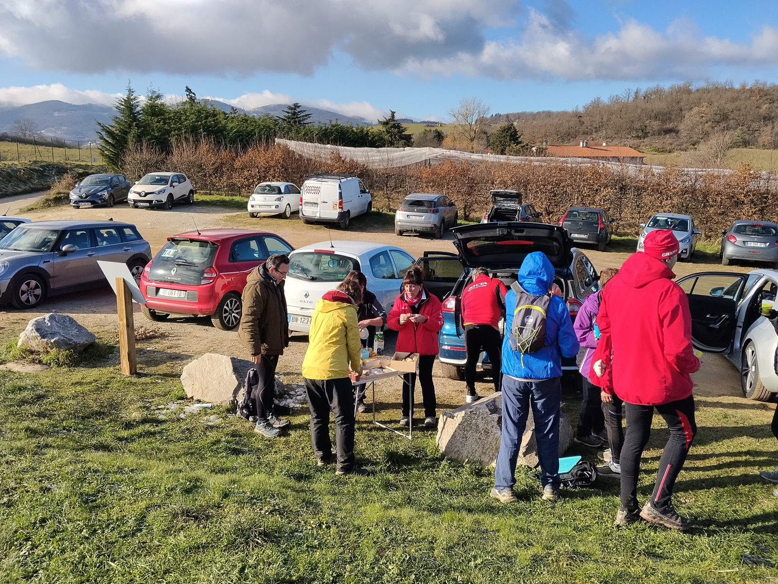 Et le final n’a pas déçu : un casse‑croûte généreux pour célébrer la nouvelle année, agrémenté de la galette offerte par le Jocel et d'un moelleux à la crème de marrons cuisiné par Patrick (cf. recette dans l'album photos). Un moment chaleureux, ponctué de rires et de partages de recettes et de bonnes adresses.