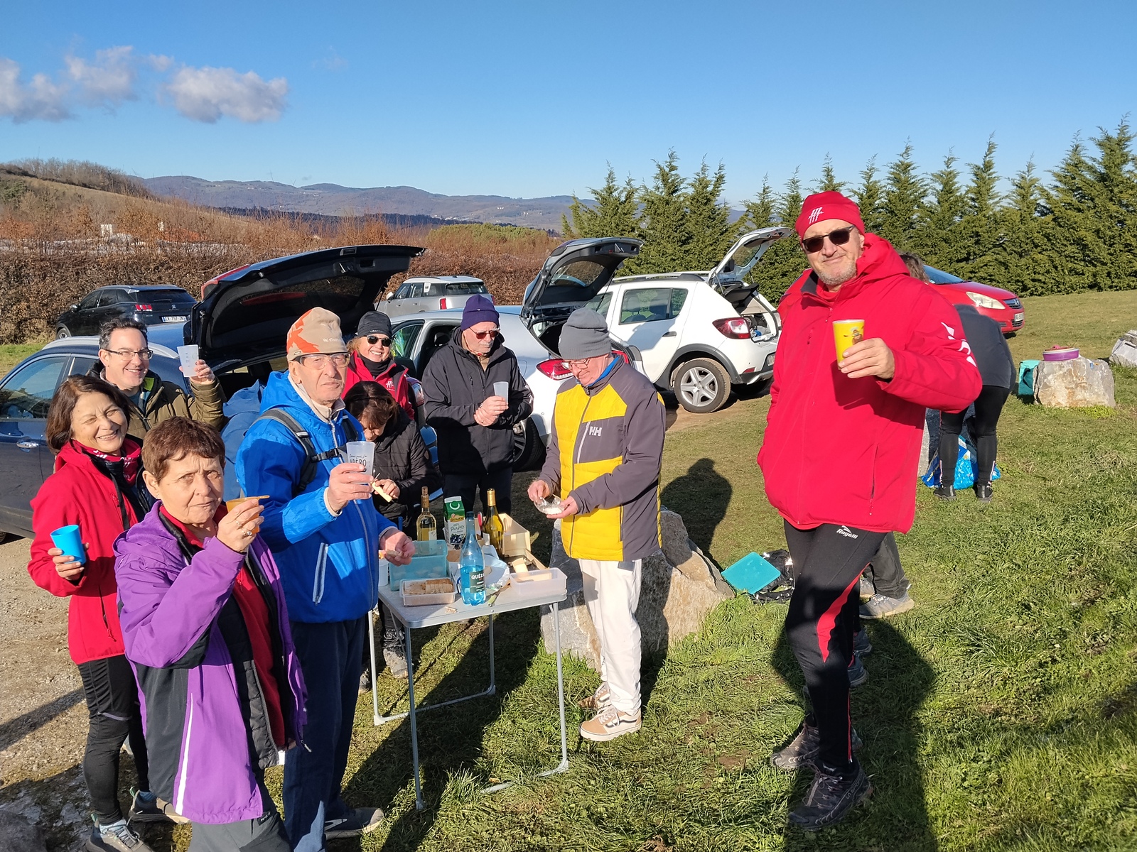Quelle belle manière de commencer l’année ! Notre sortie du samedi 3 janvier à Saint‑Laurent‑d’Agny a réuni un groupe de 17 marcheurs.euses en pleine forme, prêt à affronter le froid avec entrain. Entre chemins boisés, paysages lumineux et bonne humeur contagieuse, la randonnée avait un vrai parfum de fête sous le soleil.