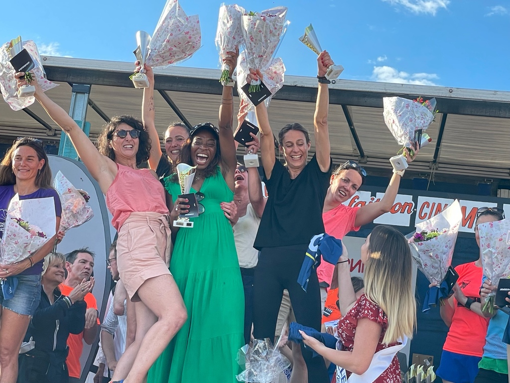 PODIUM POUR LE JOCEL !!!!!!!!! 1ère équipe féminine sur le marathon relais de ce samedi. Équipe Féminine crée par Bernard, avec Sonia, Maddy, Alexandra, Flora, Camille et une extérieure du Jocel, Manon. Premier relais sous le soleil et la chaleur, pour terminer sous un gros orage pour les derniers relais. Avec Sandrine qui avait le rôle de guetteuse pour prévenir en amont l’arrivée imminente de chaque fille, pour que les relais se fassent très rapidement. Les filles ont mis une ambiance de folie avant et sur le podium. C’était un très joli moment festif. L’esprit du Jocel a été mis à l’honneur!!!!😃😃😃😃